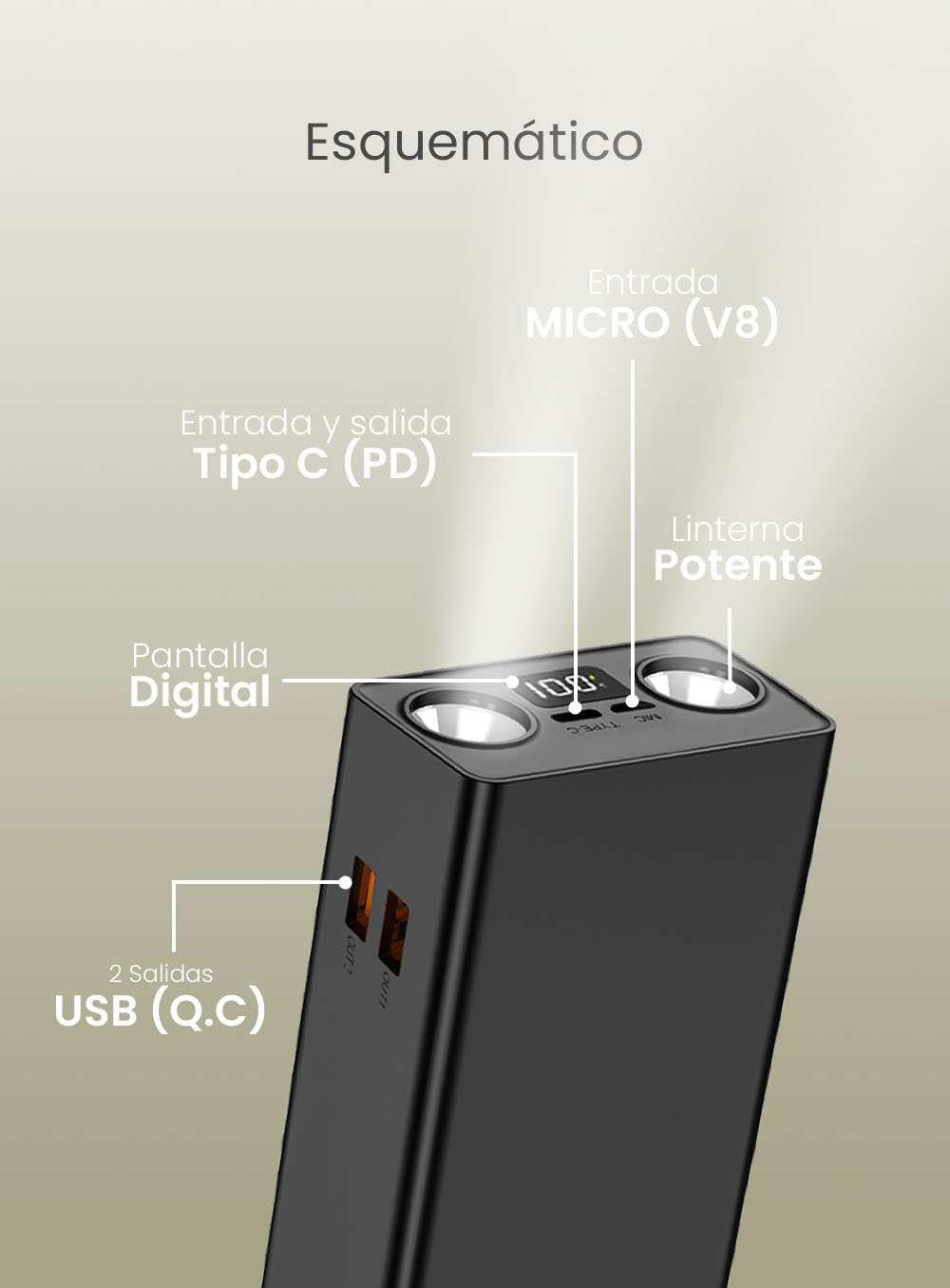 2 Entradas de carga: Micro USB (V8) y Tipo C.