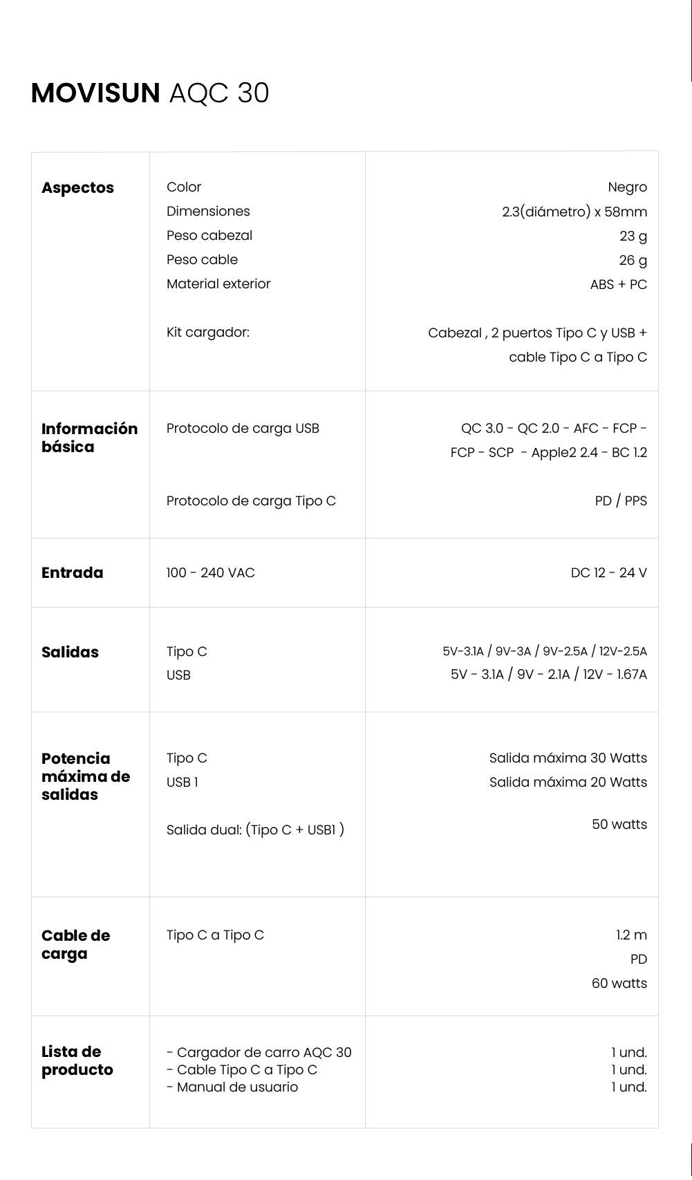 Contenido del paquete | 1 Cargador de carro + 1 Cable Tipo C a C + 1 Manual de usuario |