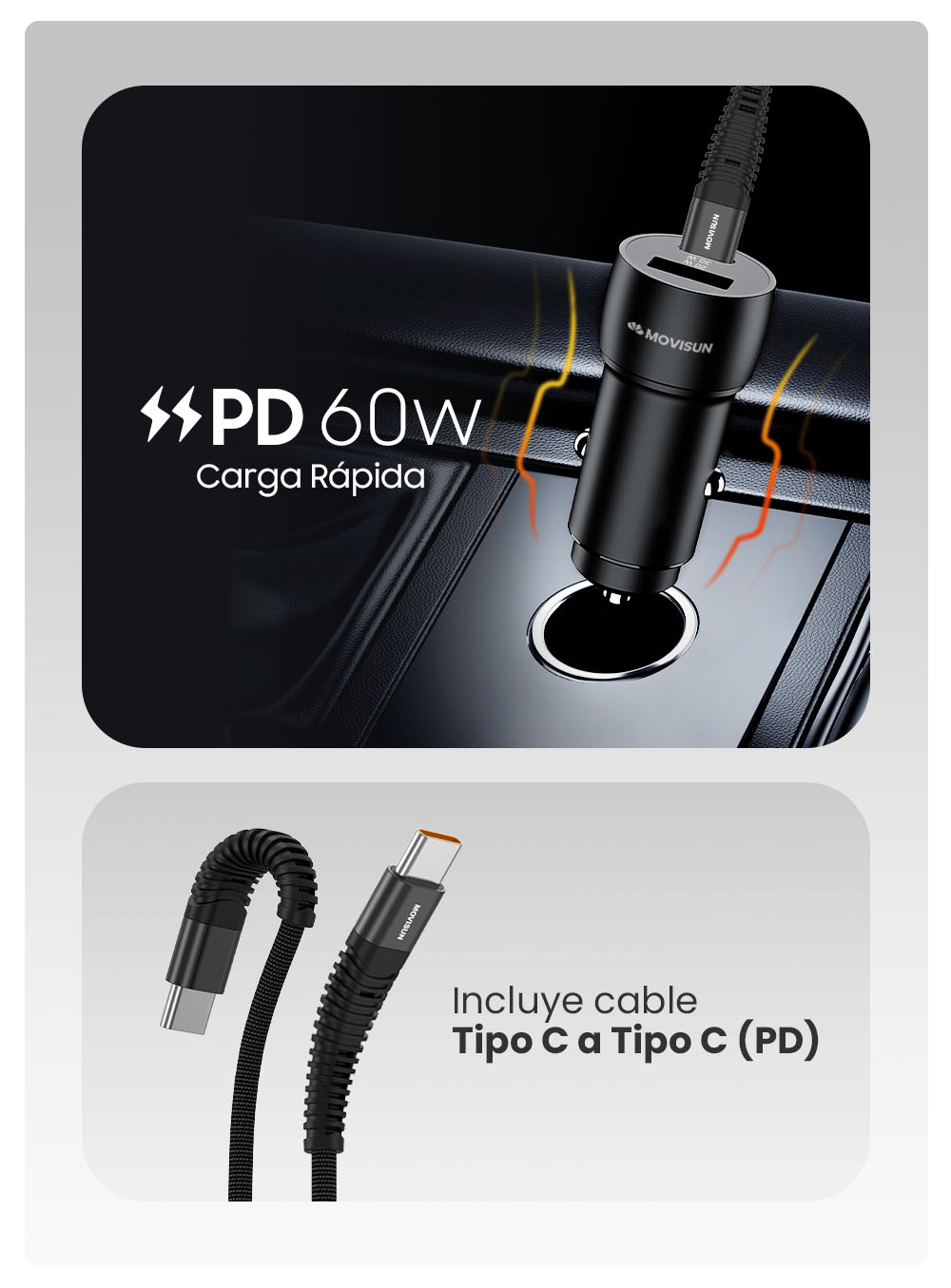 Contenido del paquete | 1 Cargador de carro + 1 Cable Tipo C a C + 1 Manual de usuario |