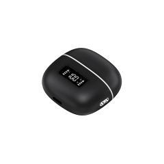 Coloca los audífonos en el estuche. Este se carga por puerto Tipo C e incluye pantalla LED que muestra el porcentaje.