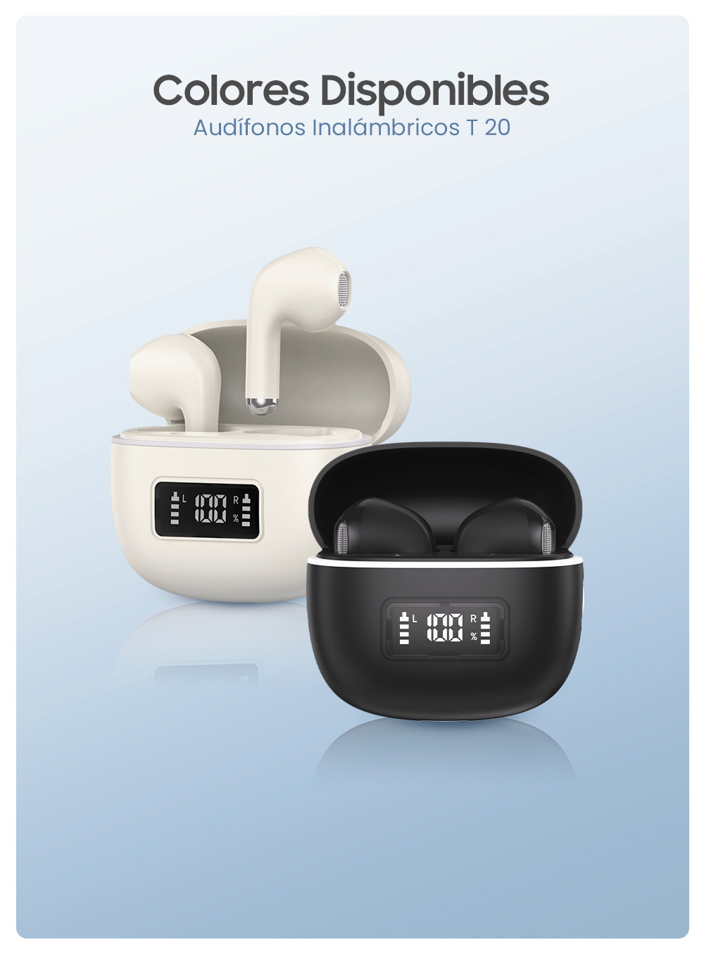 | Contenido del paquete | Audífonos T 20, Estuche de carga, Cable de carga Tipo C, Funda MOVISUN, Manual de usuario |