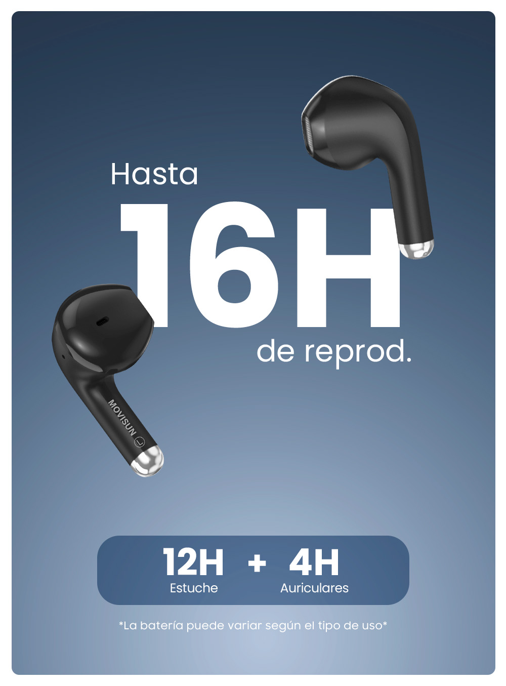 MOVISUN T 16 Negro - Audífonos inalámbricos con hasta 24 h de autonomía, y modo juego