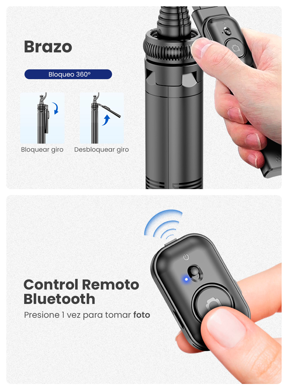 Sí, solo debes extender el brazo del trípode y utilizar el control Bluetooth incluido para tomar fotos o grabar videos.