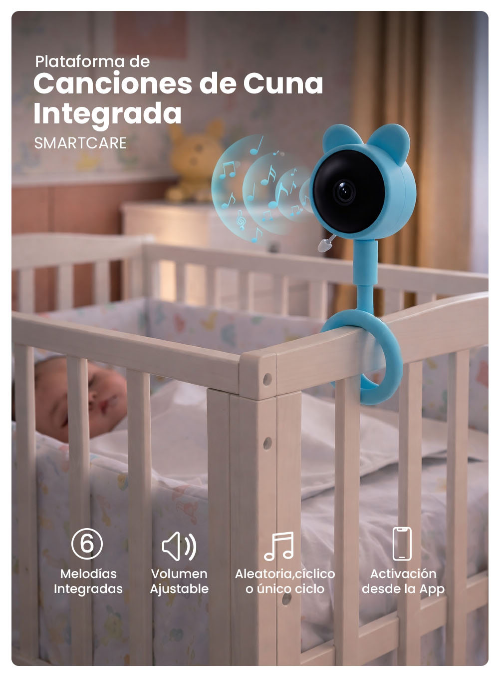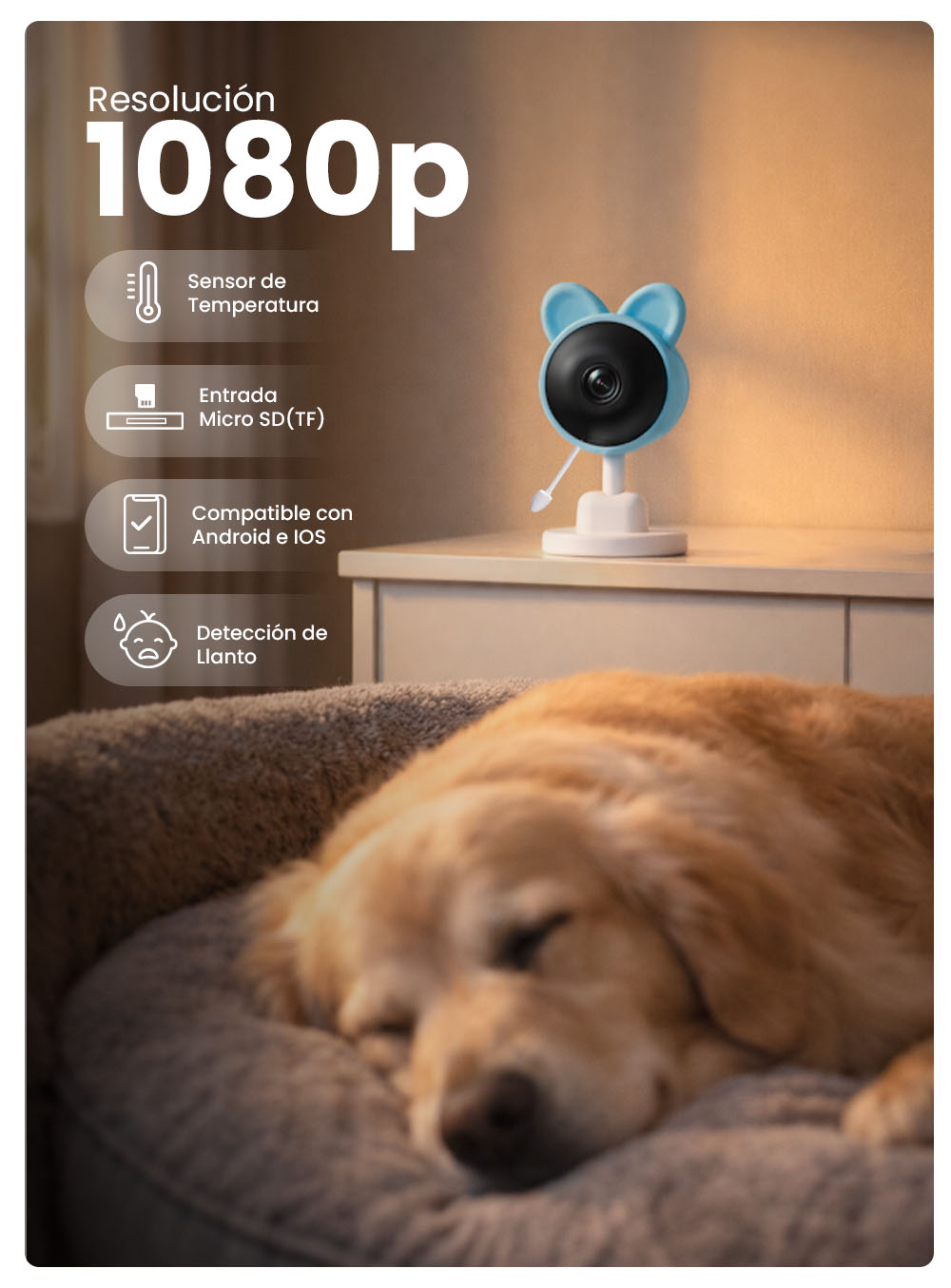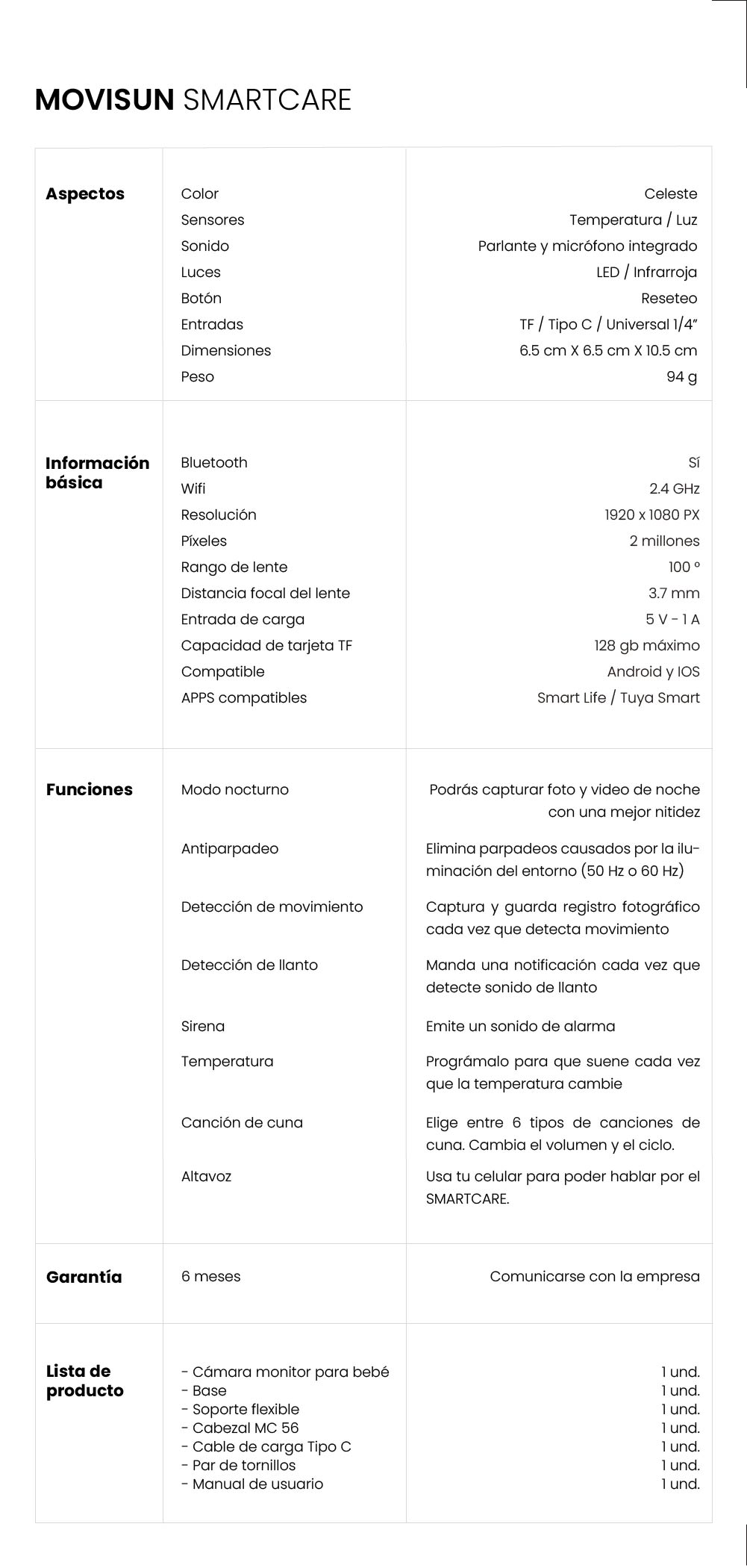 | Funciones | Visión nocturna, detección de movimiento, llanto, temperatura y modo antiparpadeo |