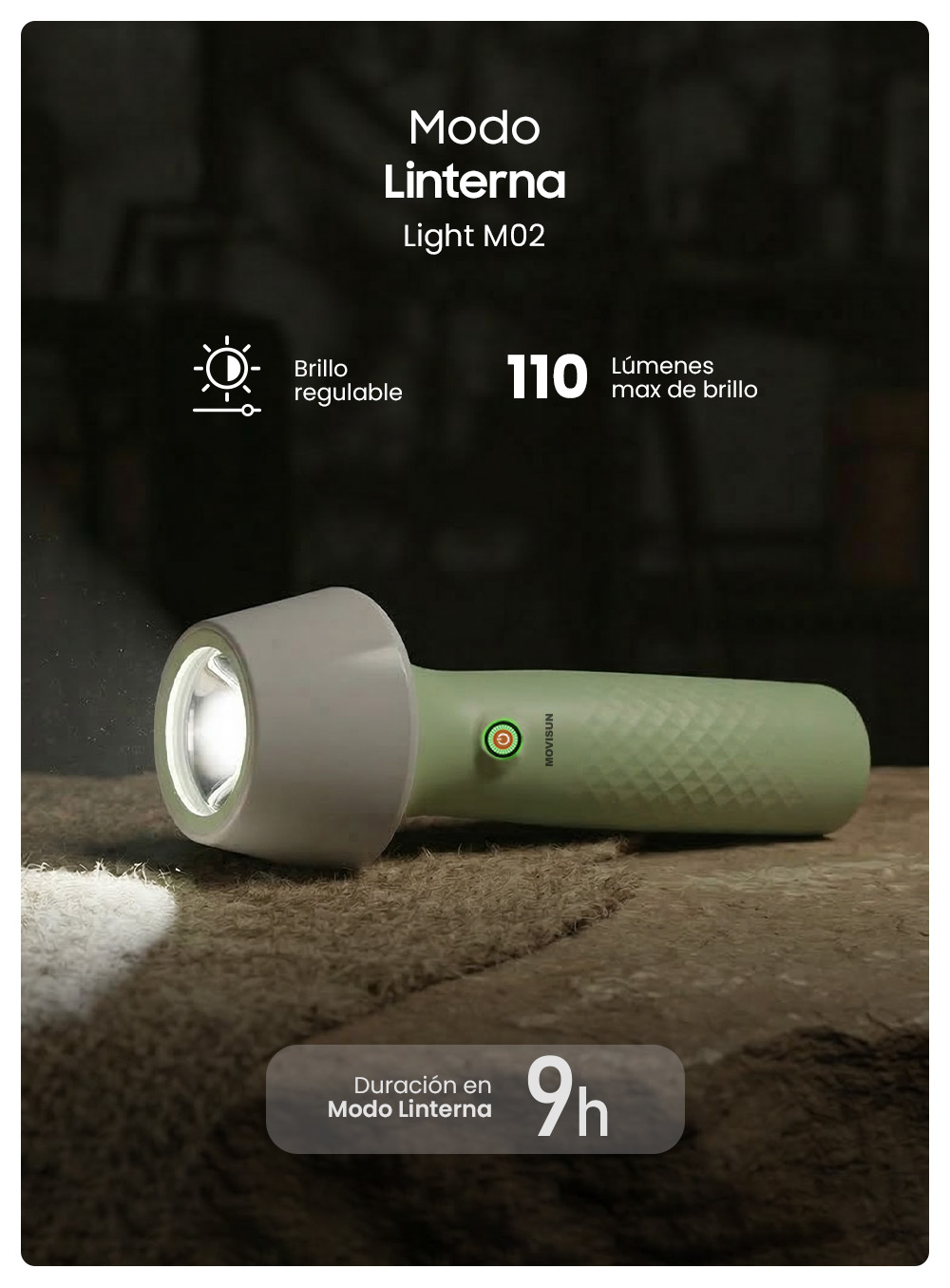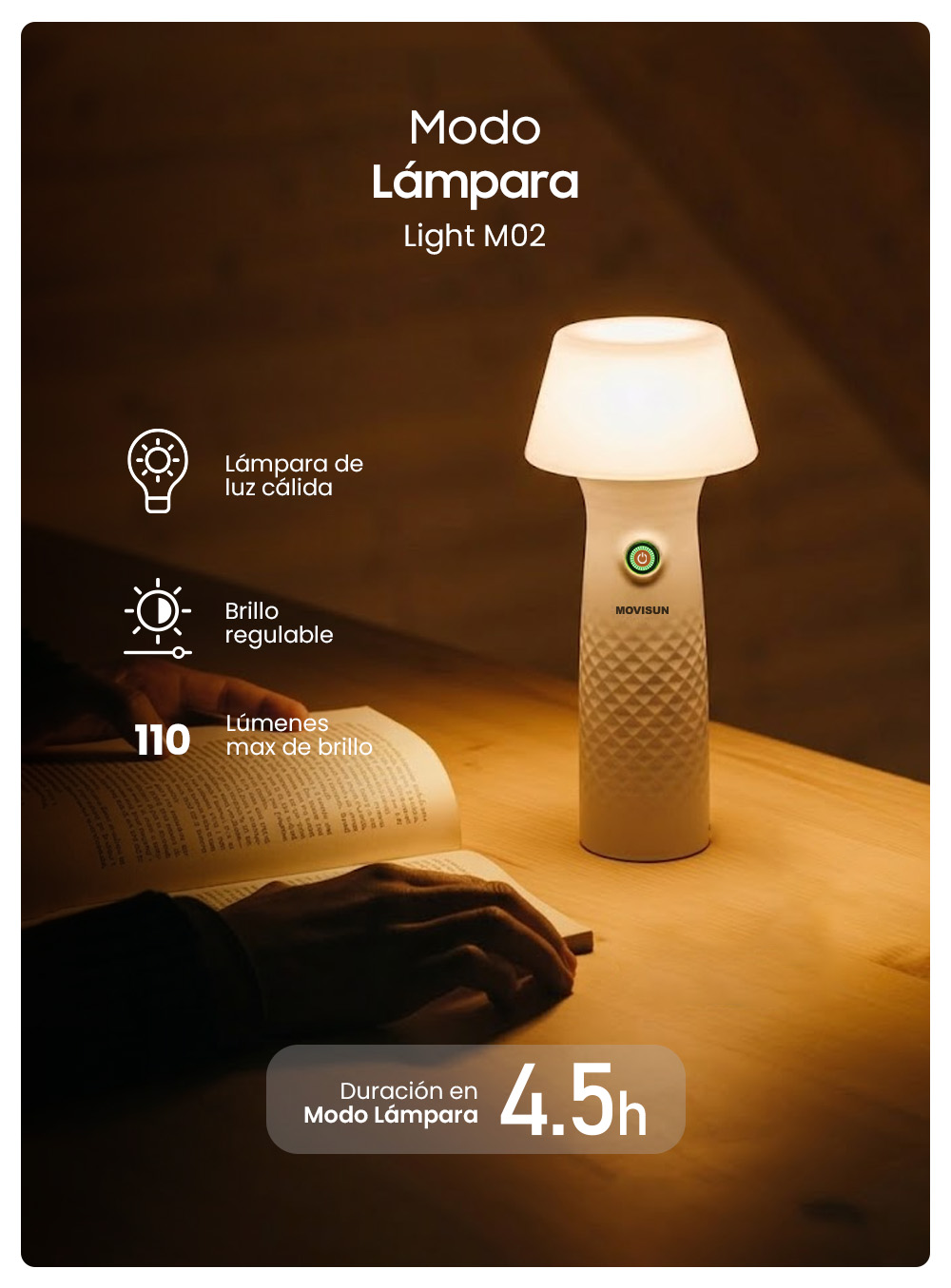 El Light M02 cuenta con dos modos: modo linterna y modo lámpara con luz cálida.