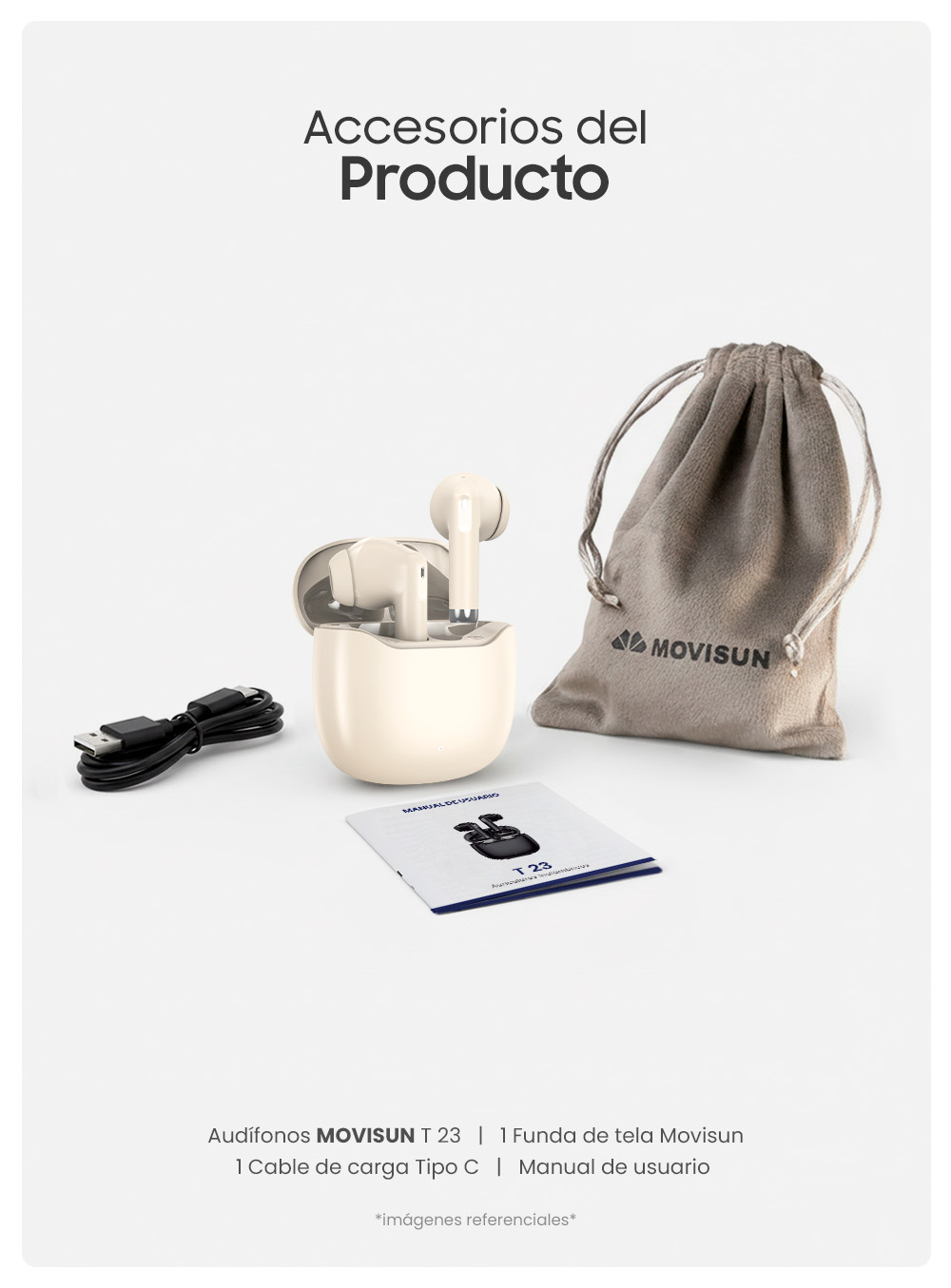 | Contenido del paquete | Auriculares T 23, estuche de carga, cable Tipo C, manual de usuario |