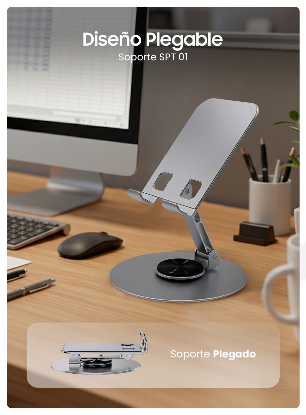 Sí, el brazo del soporte es ajustable y permite rotación de 360° para adaptar el ángulo según tu necesidad.