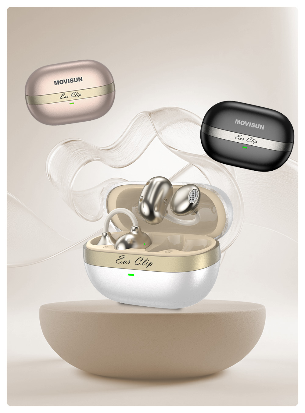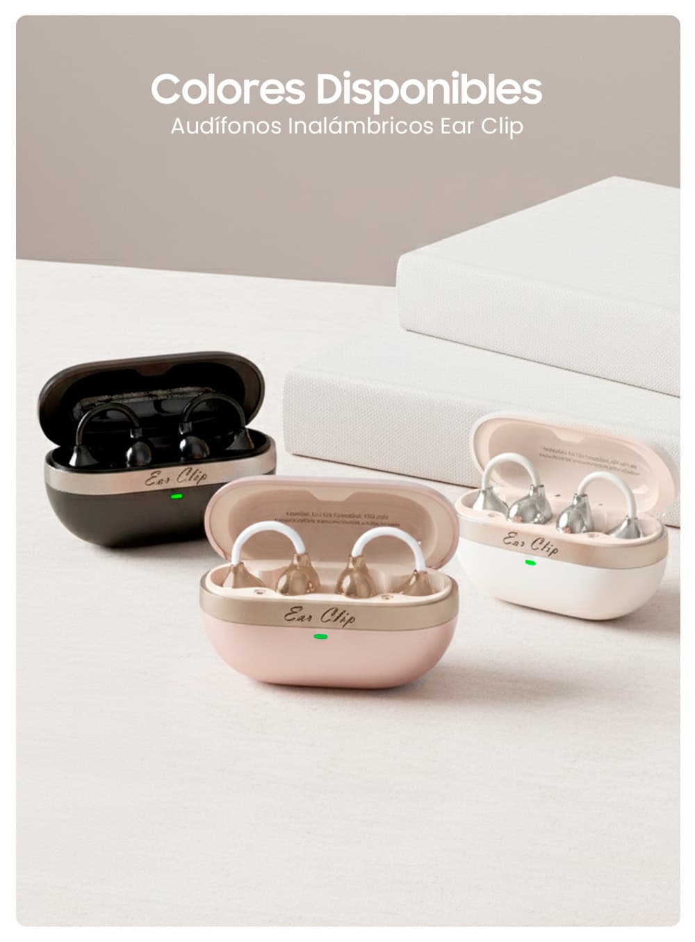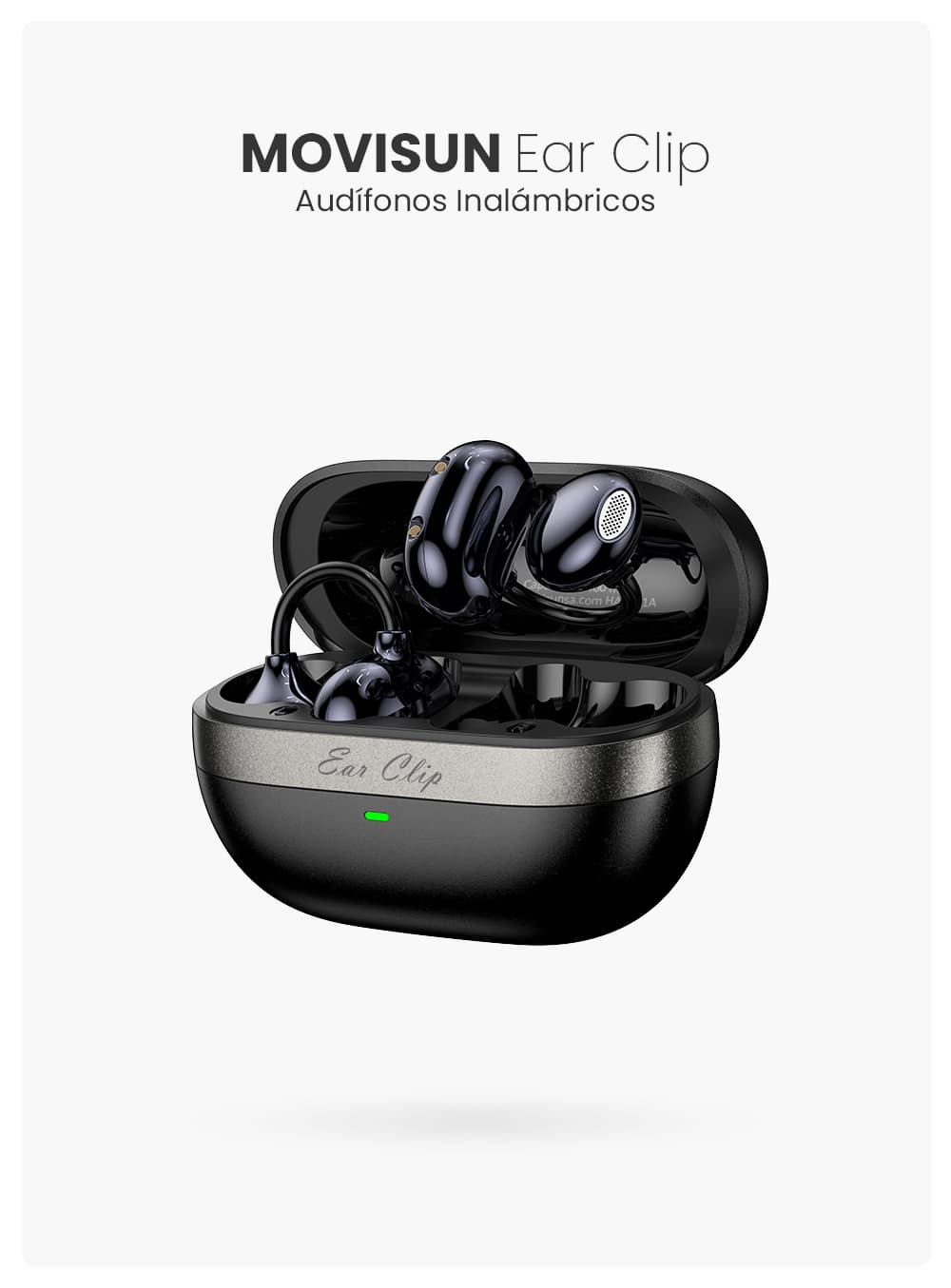 | Contenido del paquete | 2 audífonos Ear Clip, estuche de carga, cable Tipo C, funda Movisun, manual de usuario |