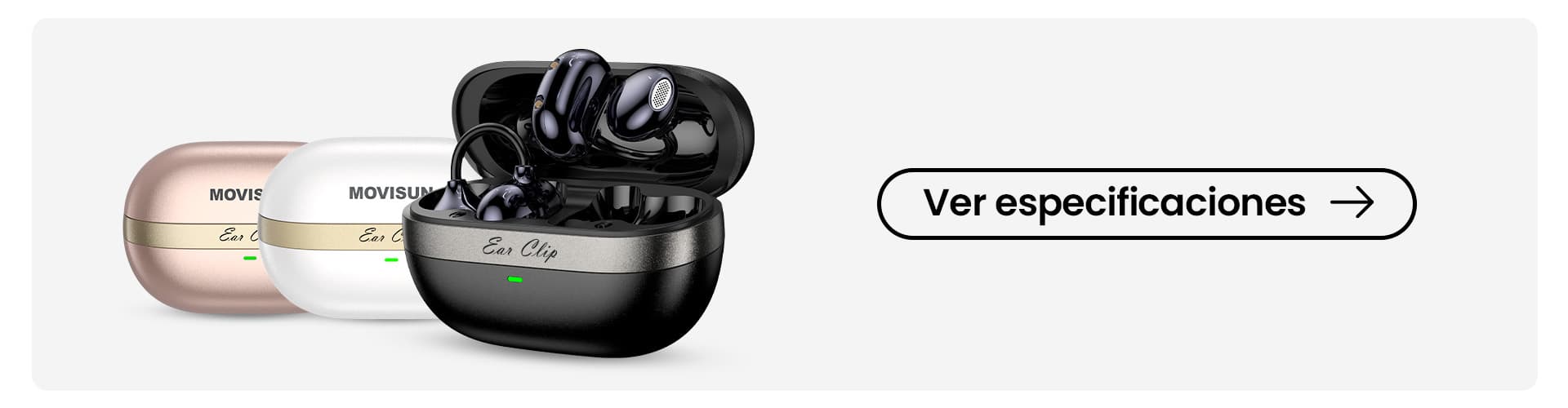 | Contenido del paquete | 2 audífonos Ear Clip, estuche de carga, cable Tipo C, funda Movisun, manual de usuario |