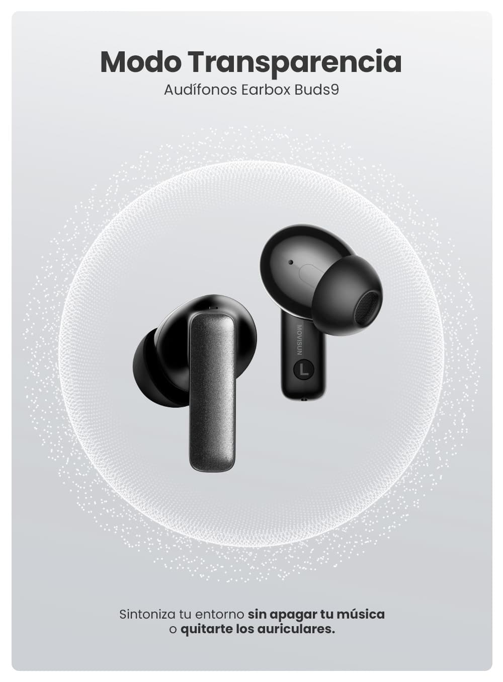 | Contenido del paquete | Auriculares Earbox Buds9, Funda, Repuesto de goma, Cable Tipo C, Manual de usuario |