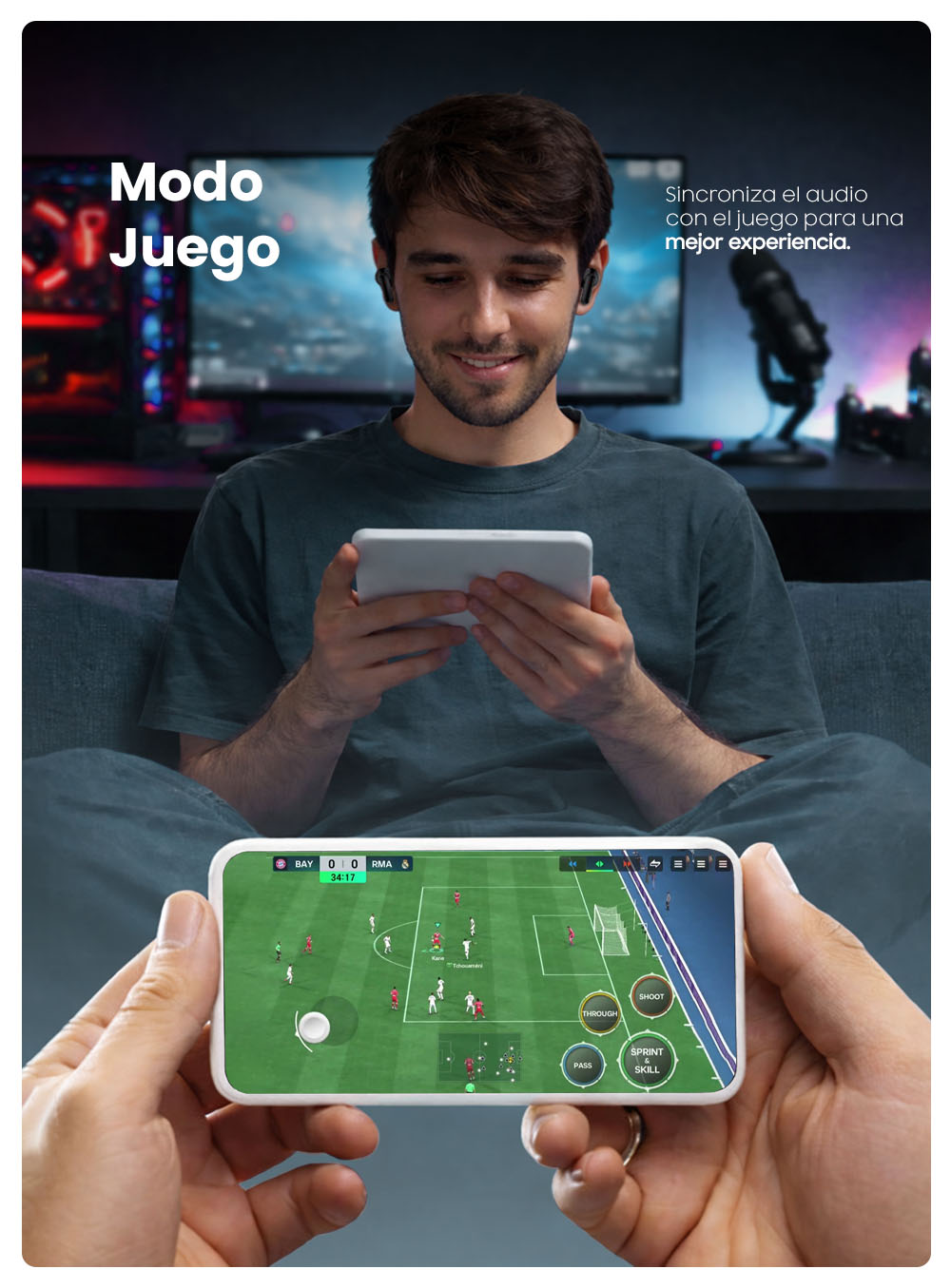Muestra el porcentaje exacto de batería del estuche en tiempo real.