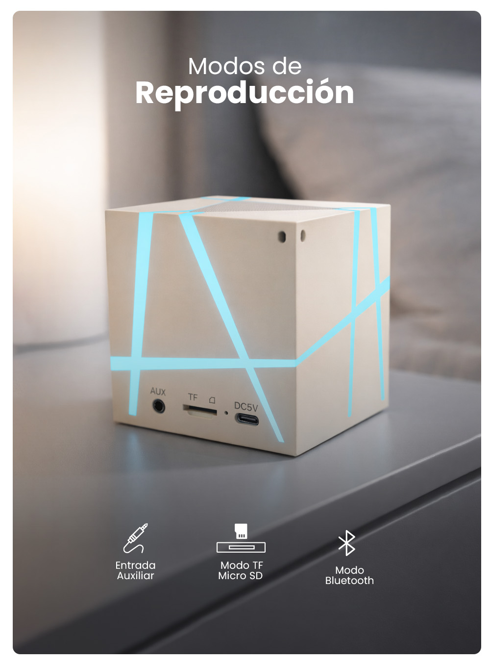 | Modos de reproducción | Bluetooth, Micro SD (TF), Auxiliar 3.5 mm |