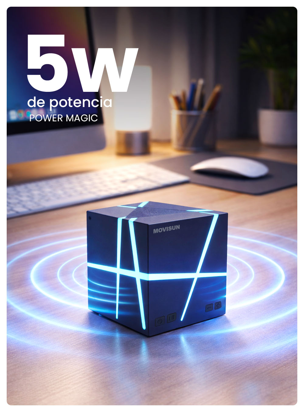 MOVISUN Power Q1 Negro – Parlante Bluetooth 7W, Función TWS, Luces LED, Radio FM, 2000 mAh y Hasta 5 Horas de Música