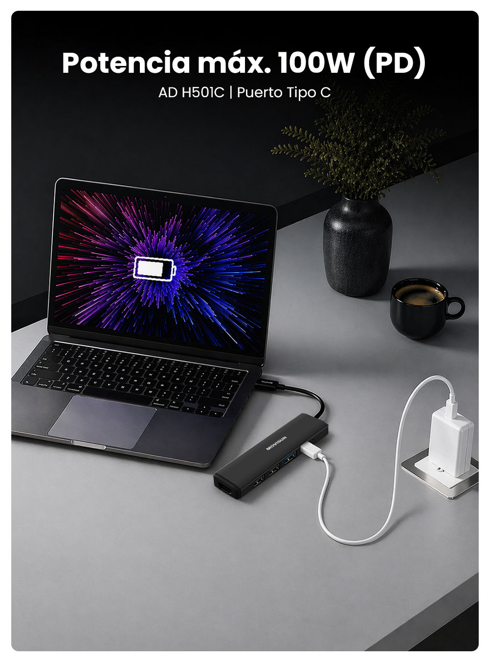 | Puerto Tipo C PD | PD 3.0 hasta 100W (20V - 5A) |